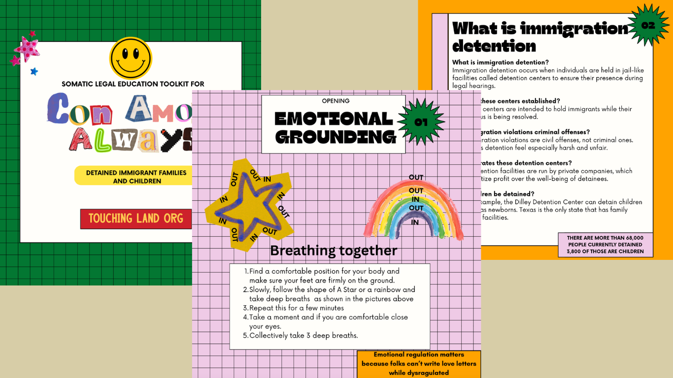 Participants are guided by an educational toolkit that includes Touching Land’s unique somatic learning practices, simple body-centered reflections that help people slow down, connect to their own experiences, and engage more deeply with the realities facing immigrant communities.